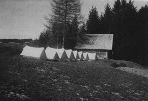 1 Feldmeister, 1 Jungfeldmeister, 11 Venner und Jungvenner und 13 Pfadfinder. Der Bestand erhöhte sich dann rasch auf 45 Pfadfinder. Am 22./23. April findet im 'im Nördli' in Bemeck das erste Zeltlager statt. Unter Leitung von Walter Schellenberg v/o Kobold nahmen 20 Knaben daran teil. An der Vorführung des Bundeslagerfilmes nehmen nur acht Personen teil.